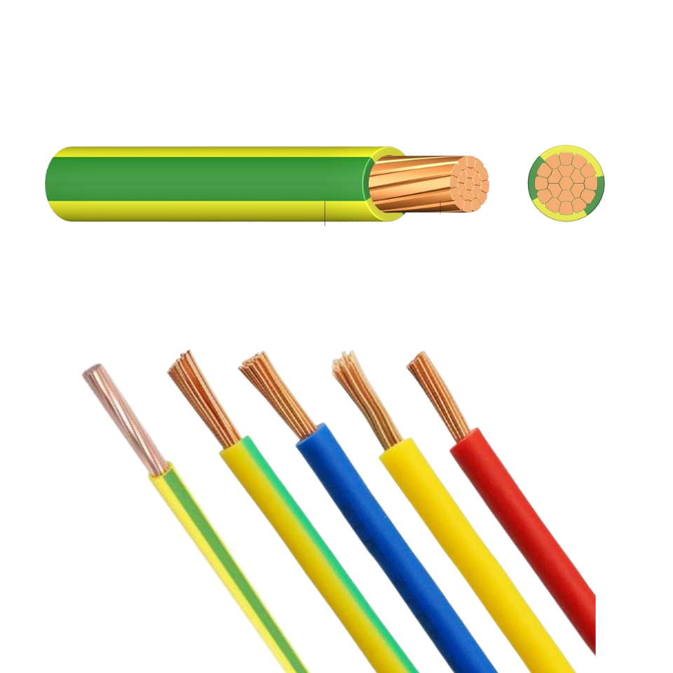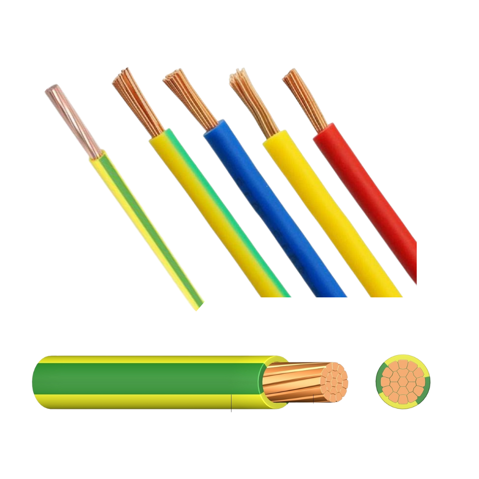 H07V-R is a single-core rigid power cable used for fixed low-voltage electrical installations (e.g., building wiring, control panels), featuring Class 2 stranded copper conductors and PVC insulation, suitable for dry or damp indoor environments.